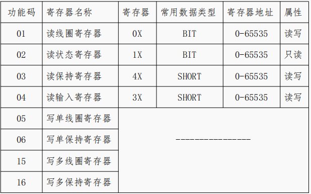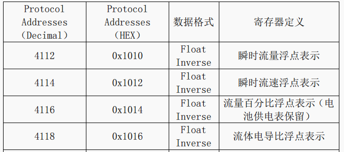 下載中心 視頻中心 常見問題 售后服務(wù) 工業(yè)網(wǎng)關(guān) 設(shè)備快線 數(shù)據(jù)云平臺 聯(lián)網(wǎng)設(shè)備 問答百科 網(wǎng)關(guān)采集modbus協(xié)議設(shè)備時,寄存器類型和地址如何選擇? 時間:2022-10-26 09:39:53 點(diǎn)擊:9043 關(guān)鍵詞:工業(yè)網(wǎng)關(guān),數(shù)據(jù)采集,modbus,寄存器 問題:網(wǎng)關(guān)采集modbus協(xié)議設(shè)備時,寄存器類型和地址如何選擇? 回答: (1)ModBus 功能碼與網(wǎng)關(guān)寄存器類型對應(yīng)關(guān)系 (2)偏移地址 以儀器儀表為例,Decimal為十進(jìn)制地址,Hex為十六進(jìn)制地址 網(wǎng)關(guān)僅支持十進(jìn)制的偏移地址,十六進(jìn)制需轉(zhuǎn)換十進(jìn)制 (2)采集演示 如設(shè)備支持modbus 協(xié)議03功能碼,偏移地址表如(2),則網(wǎng)關(guān)配置如下 上一篇:網(wǎng)關(guān)支持采集的數(shù)據(jù)類型有哪些? 下一篇: 網(wǎng)關(guān)需要將數(shù)據(jù)上報(bào)到物通博聯(lián)云平臺需要哪些配置?