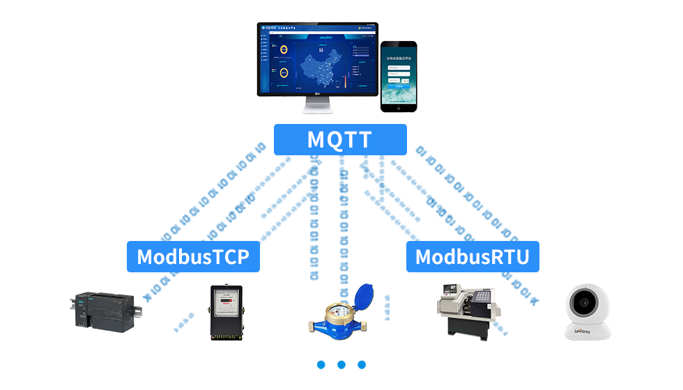 支持采集各種Modbus-TCP和Modbus-RTU協議的設備數據,并將數據通過MQTT協議上傳到云平臺