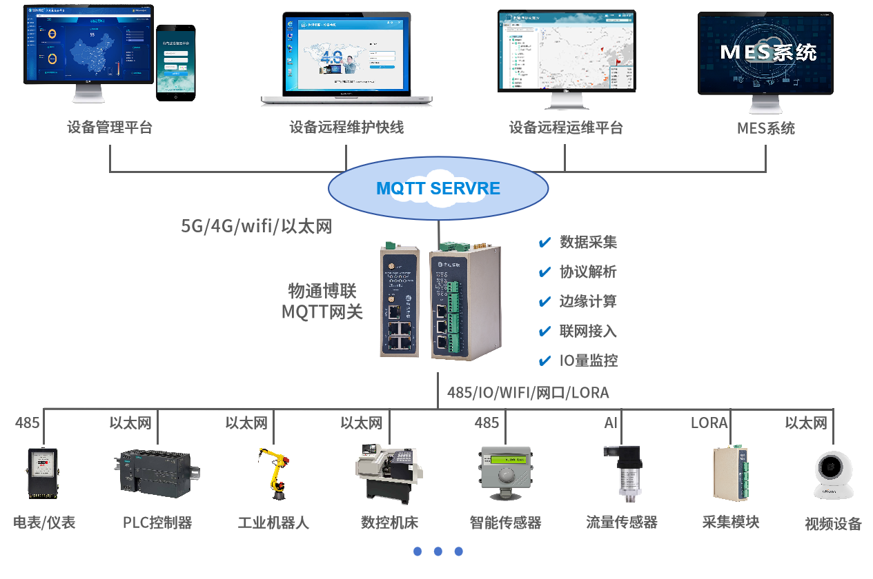 物通博聯(lián)MQTT云網(wǎng)關(guān)是實(shí)現(xiàn)工業(yè)設(shè)備數(shù)據(jù)上云的重要邊緣設(shè)備,通過(guò)MQTT云網(wǎng)關(guān)可以方便將各種工業(yè)設(shè)備的數(shù)據(jù)采集后通過(guò)MQTT協(xié)議接入到各種工業(yè)IOT云平臺(tái)。
