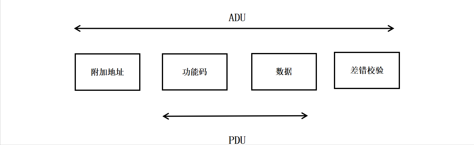 Modbus使用一種簡單的MasterandSlave主從協議(客戶機/服務器協議)進行通信。客戶機作為主站,向服務器發送請求;服務器(從站)接到請求后,對請求進行分析并作出應答。其中使用的通信幀被稱為應用數據單元(Application Data Unit,ADU),它包括通信地址段、功能代碼段、數據段和校驗段,如下圖: