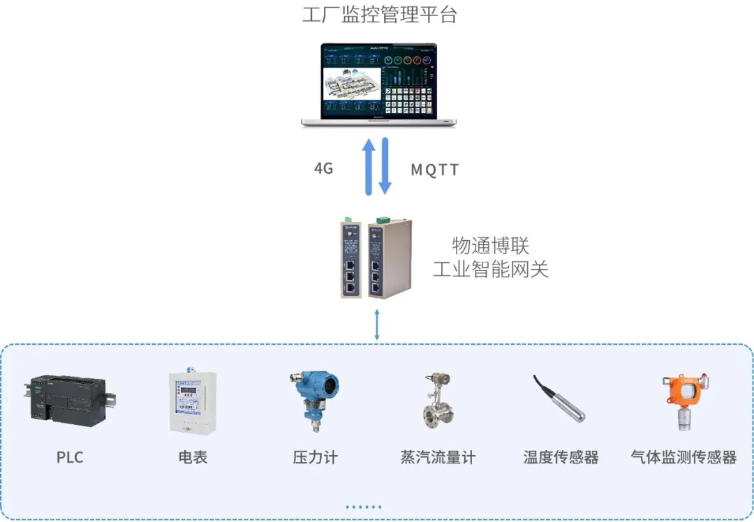通過實時采集蒸汽流量計、智能電表等數據,能夠實時對接到工廠管理平臺的能源可視化大屏中,了解設備用電量、累計熱量、熱交換效率等信息,從而制定合理的能源管理策略與節能目標。